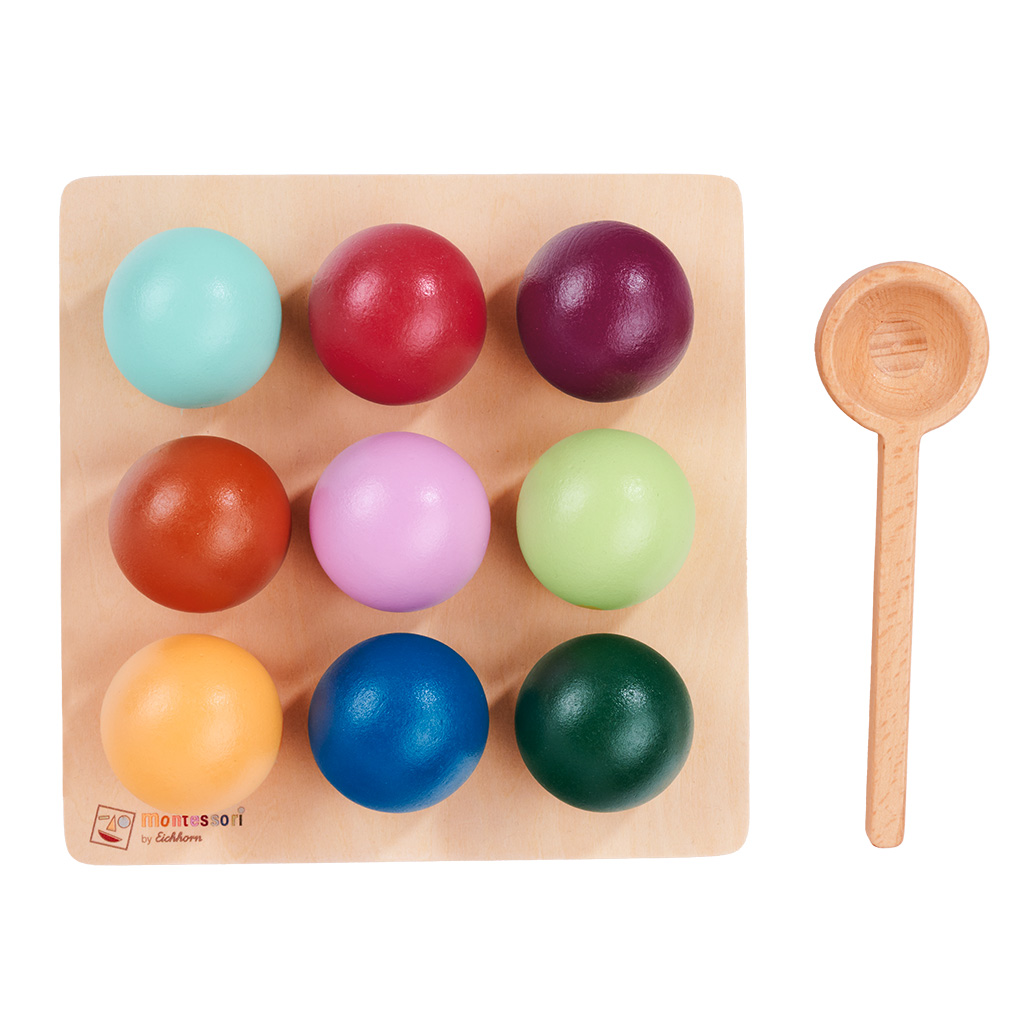 - Montessori Sortier-Kugeln – Das 11-teilige Set aus der Montessori by Eichhorn Kollektion besteht aus FSC® zertifiziertem Birken- und Buchenholz (C005308) und bringt Kindern ab 2 Jahren spielerisch Farben, Sortieren und motorische Abläufe näher.